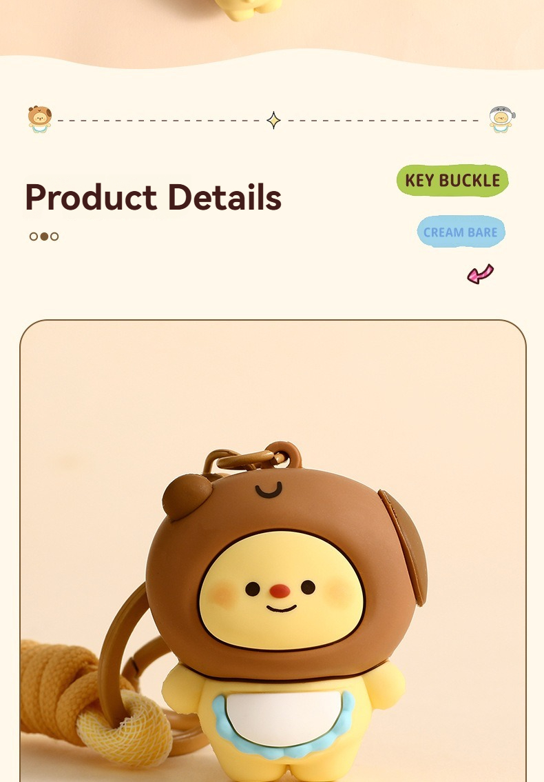 • Unique Capybara Design: Graceful Butter Bear keychain crafted in an exclusive capybara style—cute, charming, and full of personality.